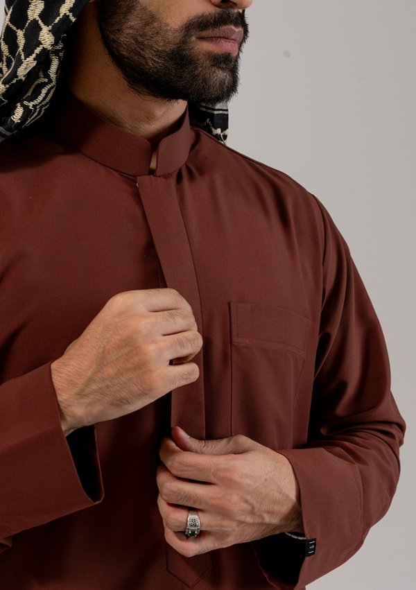 Every detail from its sharp collar to its smooth, graceful silhouette is thoughtfully designed to offer both sophistication and lasting comfort. This thobe reflects the elegance of heritage while embracing the precision and ease of modern tailoring, making it a true statement of understated luxury.